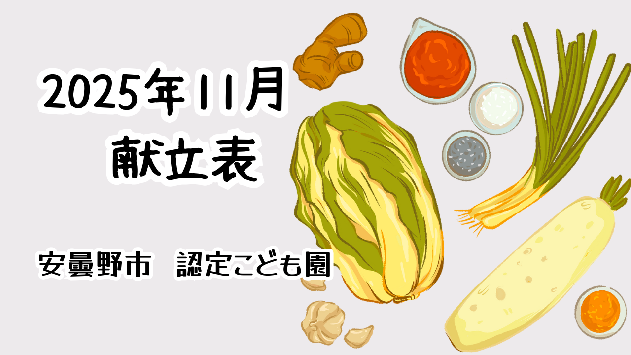 献立表市のホームページやコドモンで認定こども園の献立表がみれるんですが、「ひらがなばかり&カレンダー形式じゃないので見づらい」と妻からの要望で、献立表(漢字版)をつくってみました。